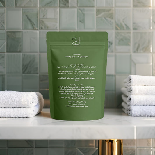 سدر طبيعي لمدة طويلة في سلطانية الجسم، وتقوية الشعر. يساعد على تحسين المعان وتقليل الهيشان مع غيره.