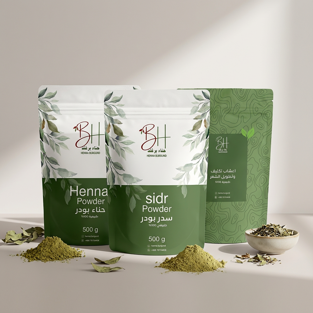 حناء 500غ + سدر 500غ + أعشاب التكثيف — روتين كامل آمن 100٪